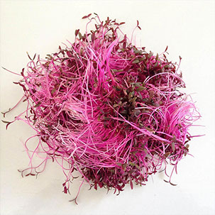 Amaranth is filled with plenty of antioxidants like carotenoids and chlorophyll along with other phytonutrients such as lutein, zeaxanthin and beta-carotene and they are very easy to digest. They are fragile shoots that enhances beautifully any meal with color and a light sweet taste. Amaranth contains high amounts of protein with vital amino acids. Amaranth microgreens also contains vitamin A, C, E, folate, iron, magnesium, phosphorus, potassium, dietary fiber, calcium, amino acids, antioxidants, minerals and essential lysine.